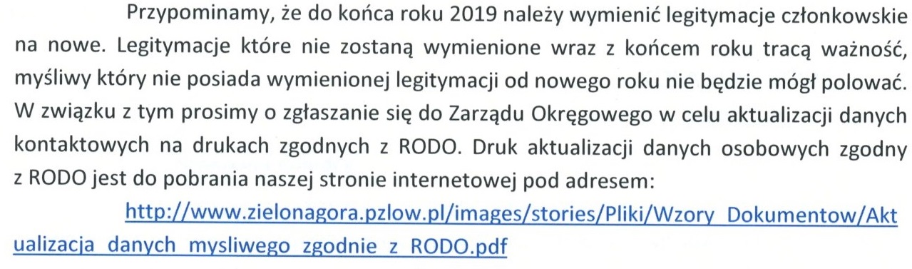 Koledzy, Koleżanki, poniżej komunikat z ZO PZŁ Zielona Góra w sprawie nowych legitymacji PZŁ.